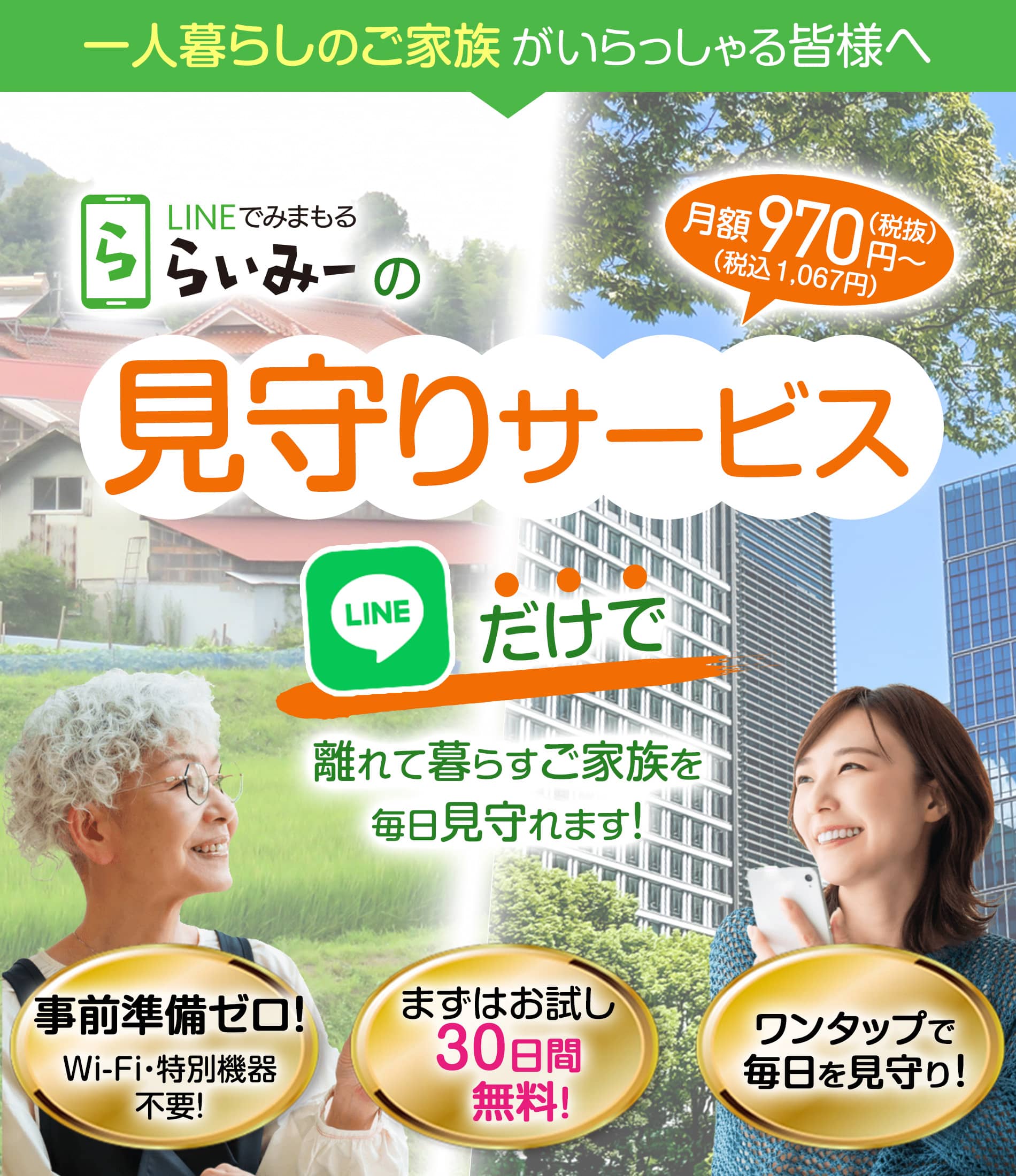 LINEで見守る「らいみー」の見守りサービスなら、LINEだけで離れて暮らすご家族を毎日見守れます!